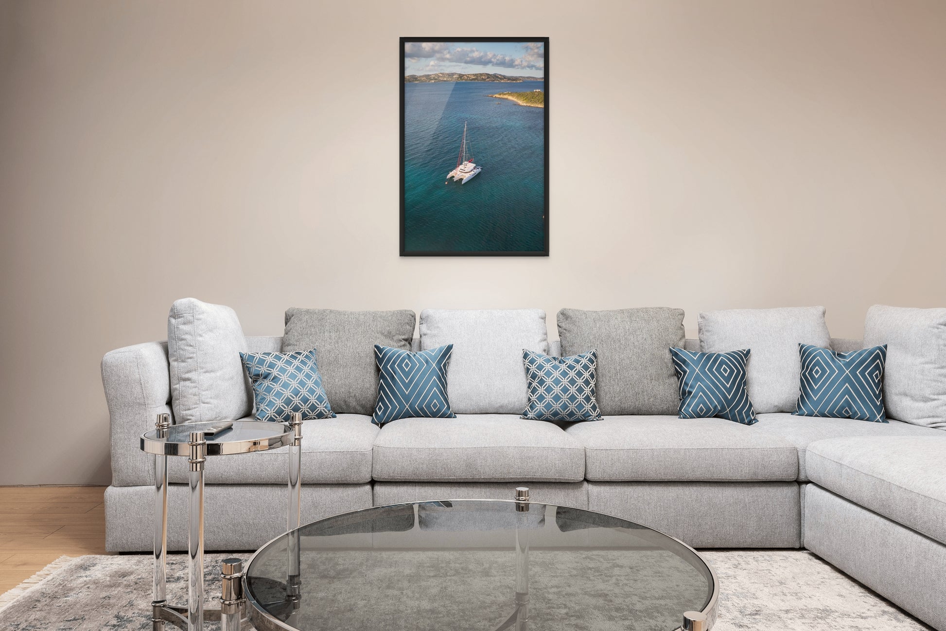 Photographed from above on a clear Mediterranean afternoon, this image highlights the tranquility and beauty of sailing in one of Europe’s most spectacular coastal regions.